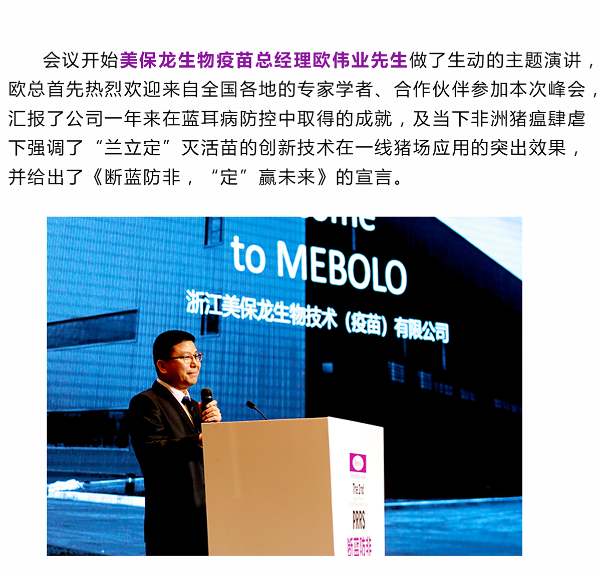 美保龙生物疫苗第二届蓝耳病临床防控高峰论坛以“断蓝防非”为核心,经过为期两天的权威讨论与分享,取得了圆满成功。