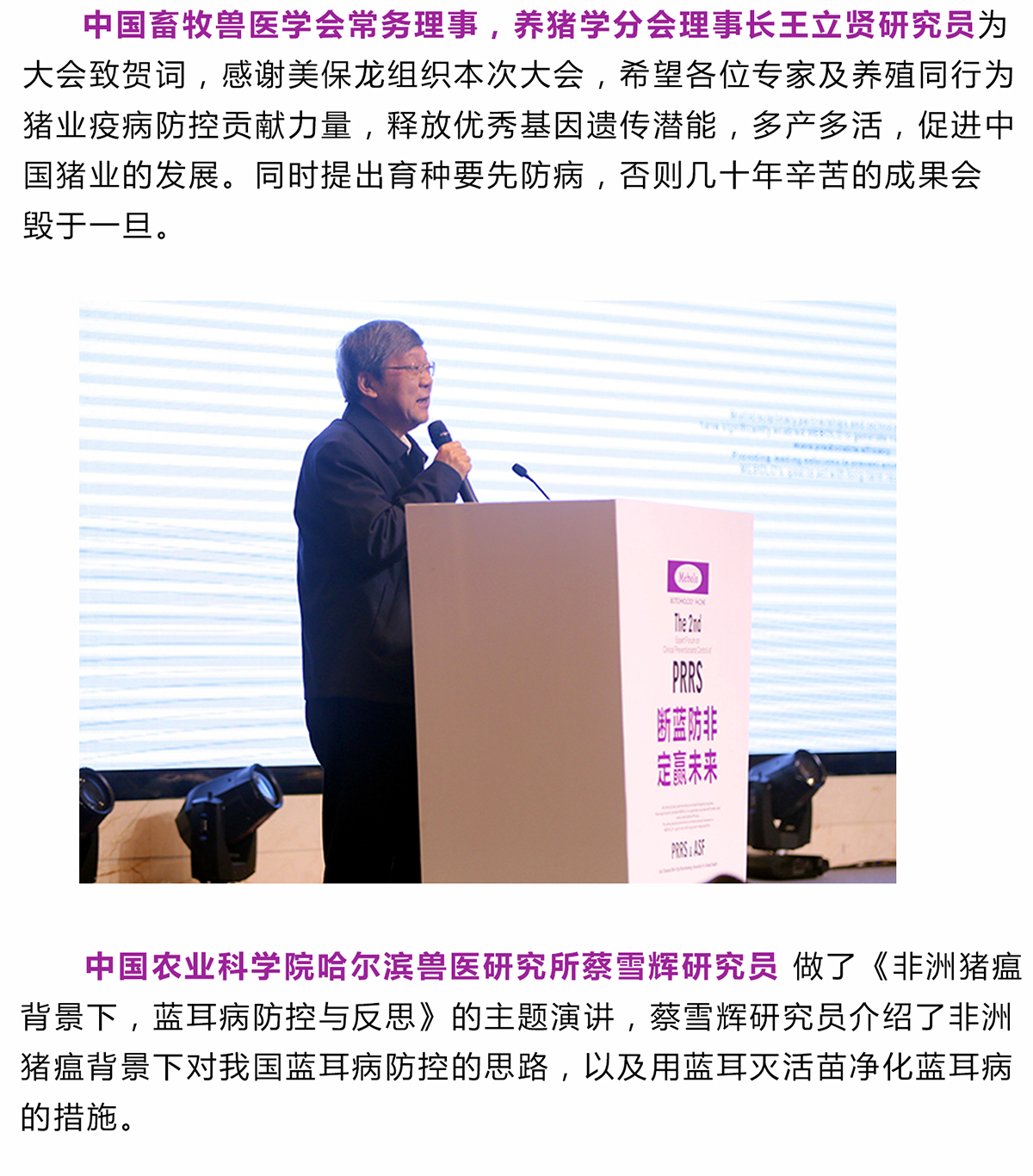 11月29日来自全国各重点院校、科研机构及集团养殖公司等60余位知名专家学者就非洲猪瘟形势下蓝耳病的防控进行了深度的研讨与交流,众专家群策群力、踊跃分享断蓝防非的宝贵经验。